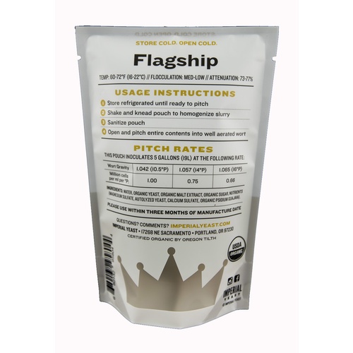 A craft brewing standard, Flagship is a versatile strain loved for its extremely clean character. This strain performs well at standard ale temperatures, but can be used in the low 60s to produce exceptionally crisp ales. Flocculation is in the middle of the road and will typically require filtration or fining to achieve crystal clear beers.