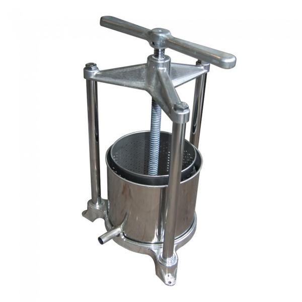 Our Mini press is great for pressing small quantities of fruit, herbal tinctures, cheese, and more. The stainless steel perforated basket keeps the product in, while the outer basin with pour spout direct the liquid to your collection container. The perforated basket and outer basin are made of stainless steel.