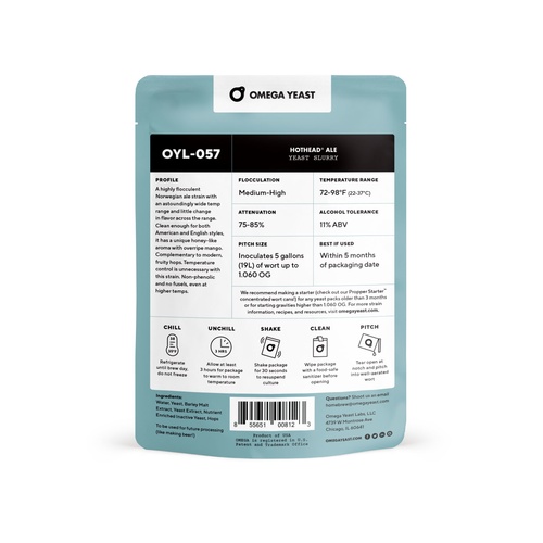 A highly flocculent Norwegian ale strain with an astoundingly wide temperature range and little change in flavor across the range, Hothead® is clean enough for both American and English styles. It has a unique honey-like aroma with overripe mango which is complementary to modern, fruity hops. Temperature control is unnecessary with this strain. Non-phenolic.