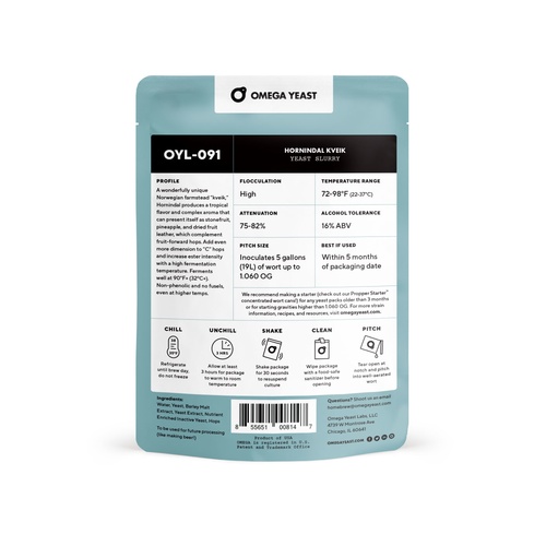 A wonderfully unique Norwegian farmstead kveik, Hornindal presents an intense, tropical flavor and aroma of fresh pineapple, mango and tangerine, which complement fruit-forward hops. Add even more dimension to “C” hops with a high fermentation temperature, intensifying aroma and fermentation speed. Though highly flocculent, it will leave beers slightly hazy. Ferments well at 90º F or higher (32° C or higher). Non-phenolic.