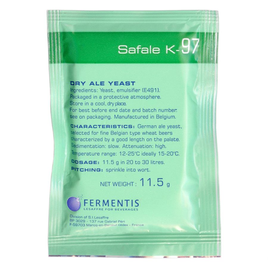 Fermentis Safale K-97 is a German ale yeast selected for its ability to form a large firm head when fermenting.